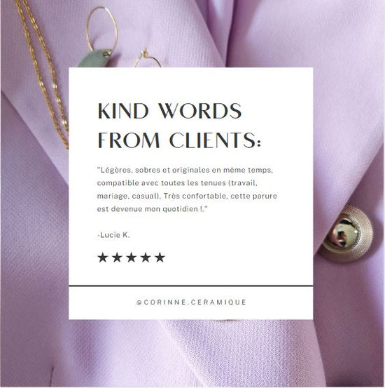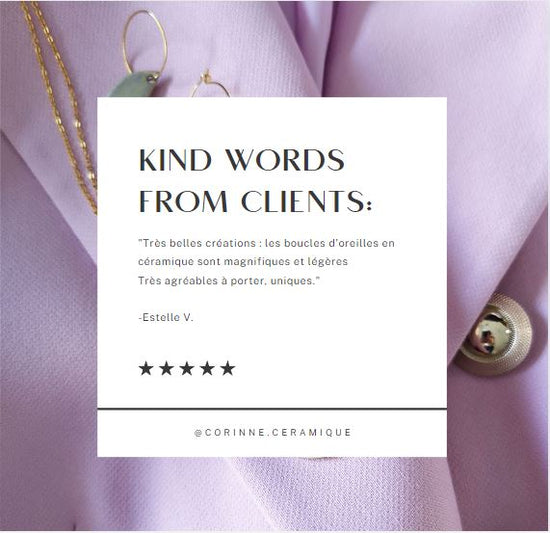 "Très belles créations : les boucles d’oreilles en céramique sont magnifiques et légères